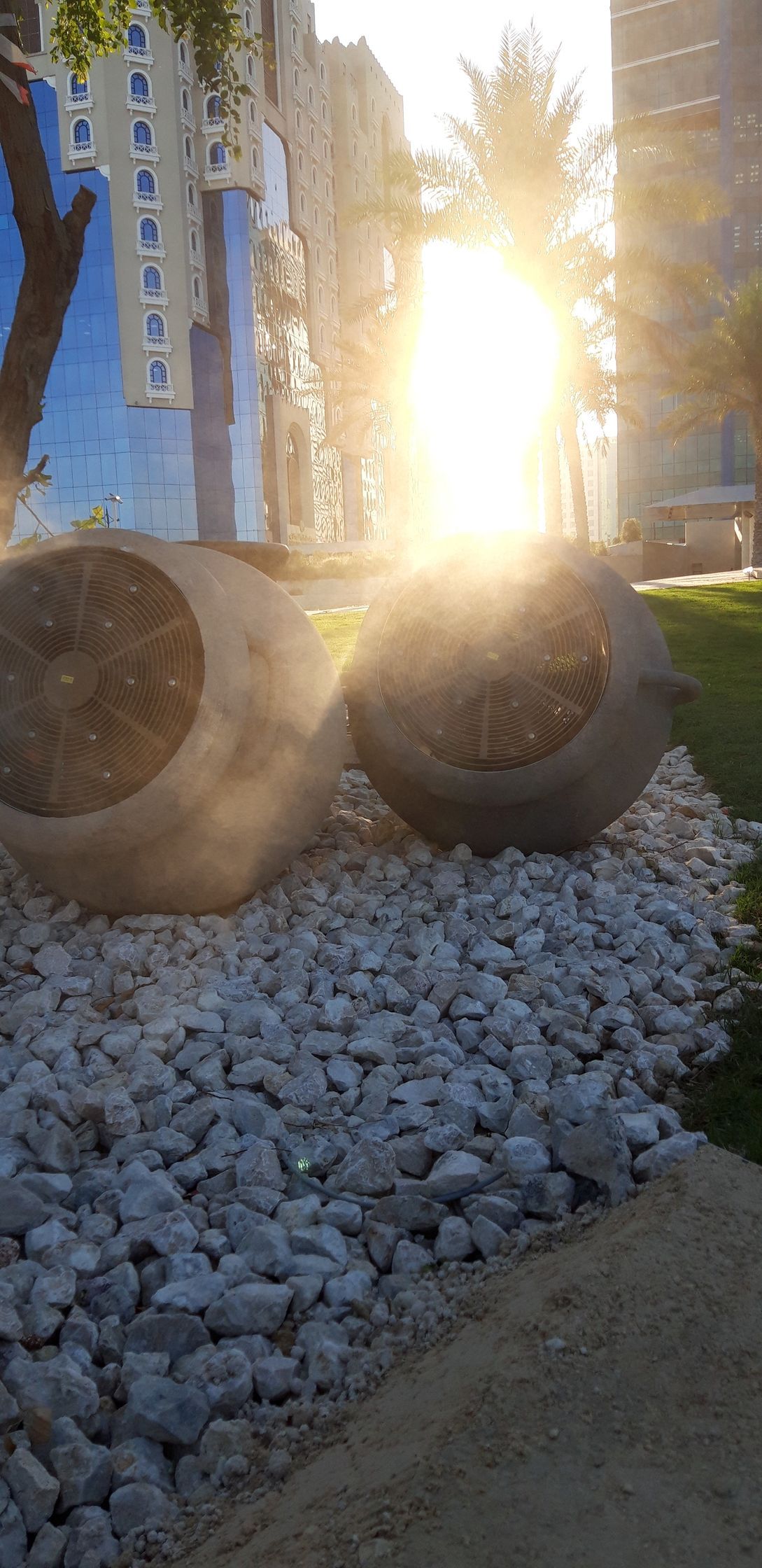 Modern city cooling spots can reduce local temperature up to 18 °F by vaporizing small quantities of water. The hotter and drier the air is, the better the cooling effect works.